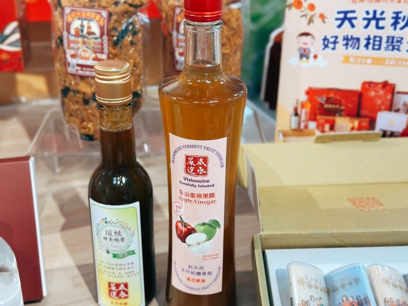 「梨山蜜蘋果醋」蘋果清香,帶著淡淡蜜甜。酸酸甜甜,讓聚會餐桌更開胃。